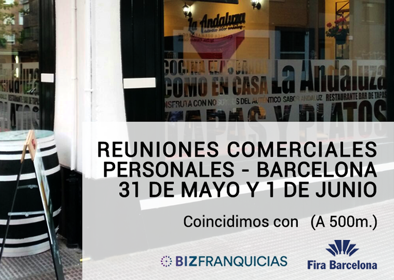 El Grupo La Andaluza ultima los detalles de su nueva jornada de reuniones comerciales personales. En ésta ocasión asisten a Barcelona los días 31 de mayo y 1 de junio, misma fecha en la que se desarrolla el evento de franquicias en Barcelona BIZ Franquicias. La ubicación del evento de La Andaluza queda muy cerca del recinto ferial (A unos 500 metros), por lo que se espera que además de las reservas de citas que están consiguiendo en su formulario de contacto de la web https://www.laandaluza.com/