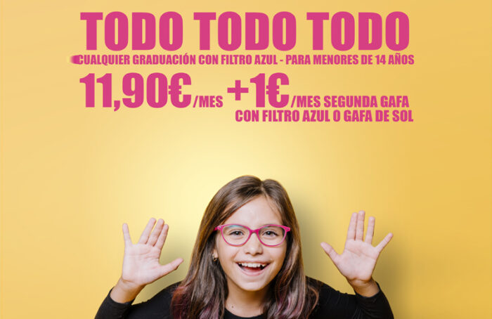 Por una pequeña cuota mensual, sus clientes podrán disponer de un servicio completo, que durante 24 meses incluye: revisiones, cambios de cristales, seguro de rotura, mantenimiento, ajustes y un largo etc. Además de poder elegir entre un amplio abanico de gafas de stock, sin límite de graduación, con lentes reducidas con tratamientos de alta calidad y filtro azul, para la protección frente a las pantallas tan necesaria ahora que los niños han aumentado el uso de estos dispositivos electrónicos.