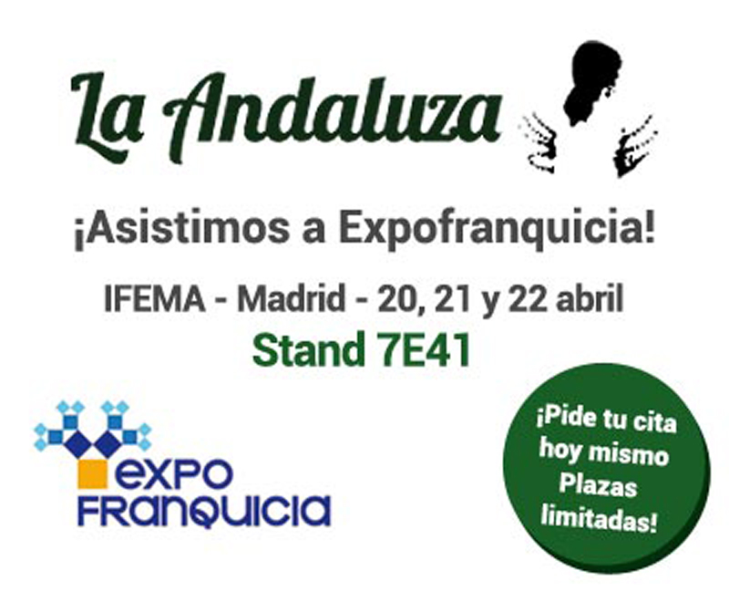 La Andaluza asiste este año a Expofranquicia con stand propio (El nº de stand es el 7E41). En este espacio, la dirección de El Grupo La Andaluza y parte de su equipo comercial se darán cita con emprendedores interesados en unirse a su marca. Para ello, La Andaluza puede facilitar invitaciones a aquellos que quieran visitarlos en Madrid los días 20, 21 y 22.
