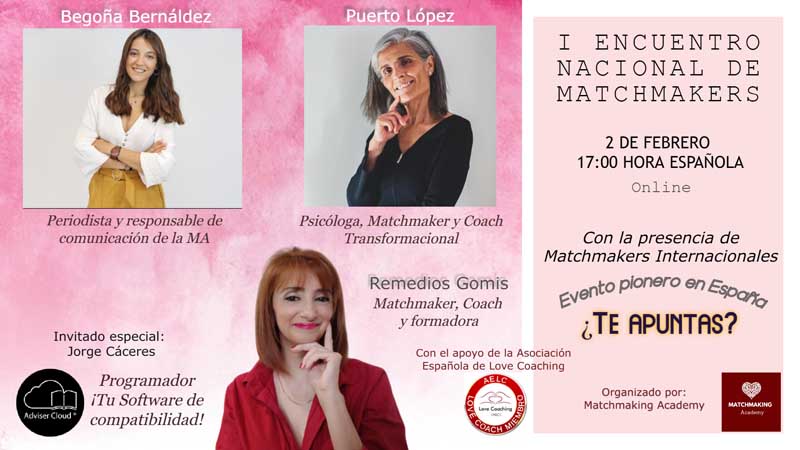 La Matchmaking Academy, con el apoyo de la Asociación Española de Love Coaching, celebra el próximo 2 de febrero el primer encuentro de Matchmakers nacionales e internacionales.