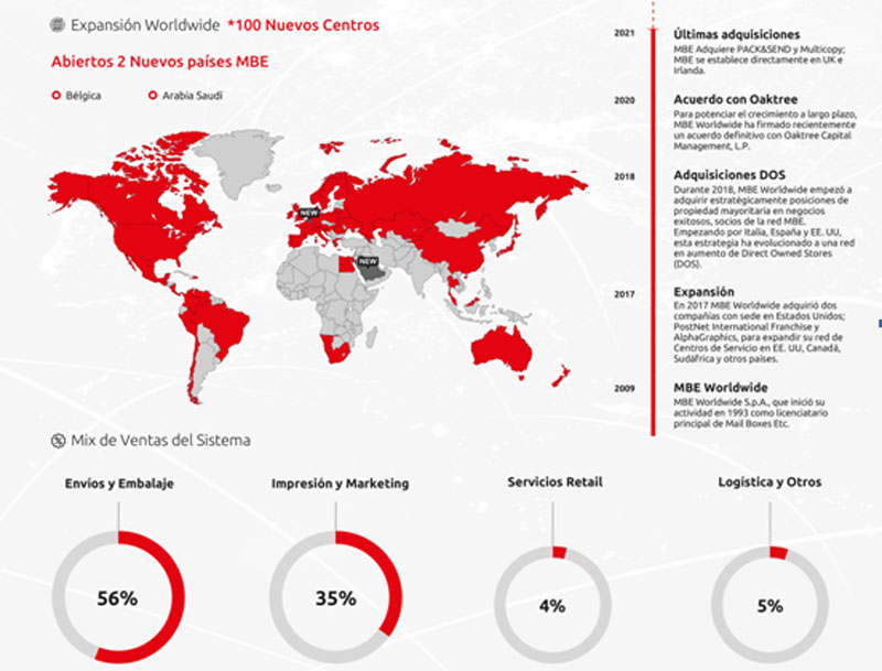 MBE cerró 2020 con más de 2.800 centros de servicios en 53 países y 879 millones de euros (1.004$ Millones $US)* de facturación agregada. Además, se abrieron más de 100 nuevos