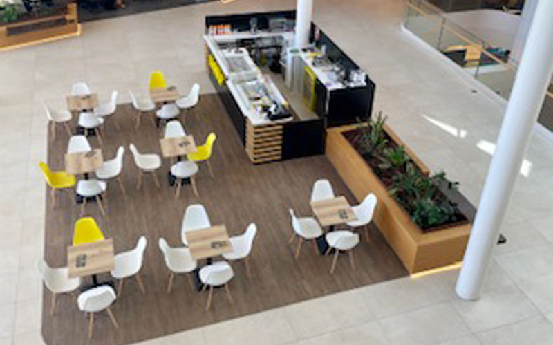 El nuevo STAND está ubicado en pleno centro en la planta de Hostelería Tendrá un concepto de TAKE AWAY y CAFETERIA así también todos los clientes podrán disfrutar de su amplia terraza .