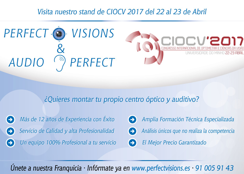 La cadena de óptica y audiometría, PerfectVisions & AudioPerfect, acudirá al Congreso Internacional de Optometría y Ciencias de la Visión – CIOCV´17, que se celebrará los próximos días 22 y 23 de abril en Braga, Portugal.